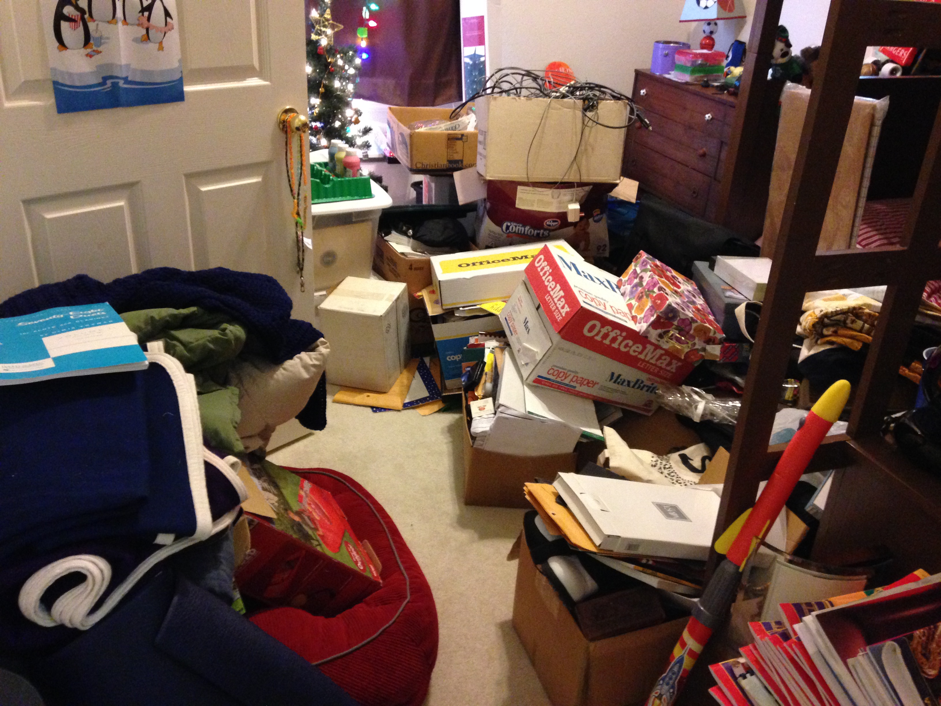 By that evening, Caleb’s room and the downstairs were full of things that we were going to get rid of and we didn’t have much room left to work in.