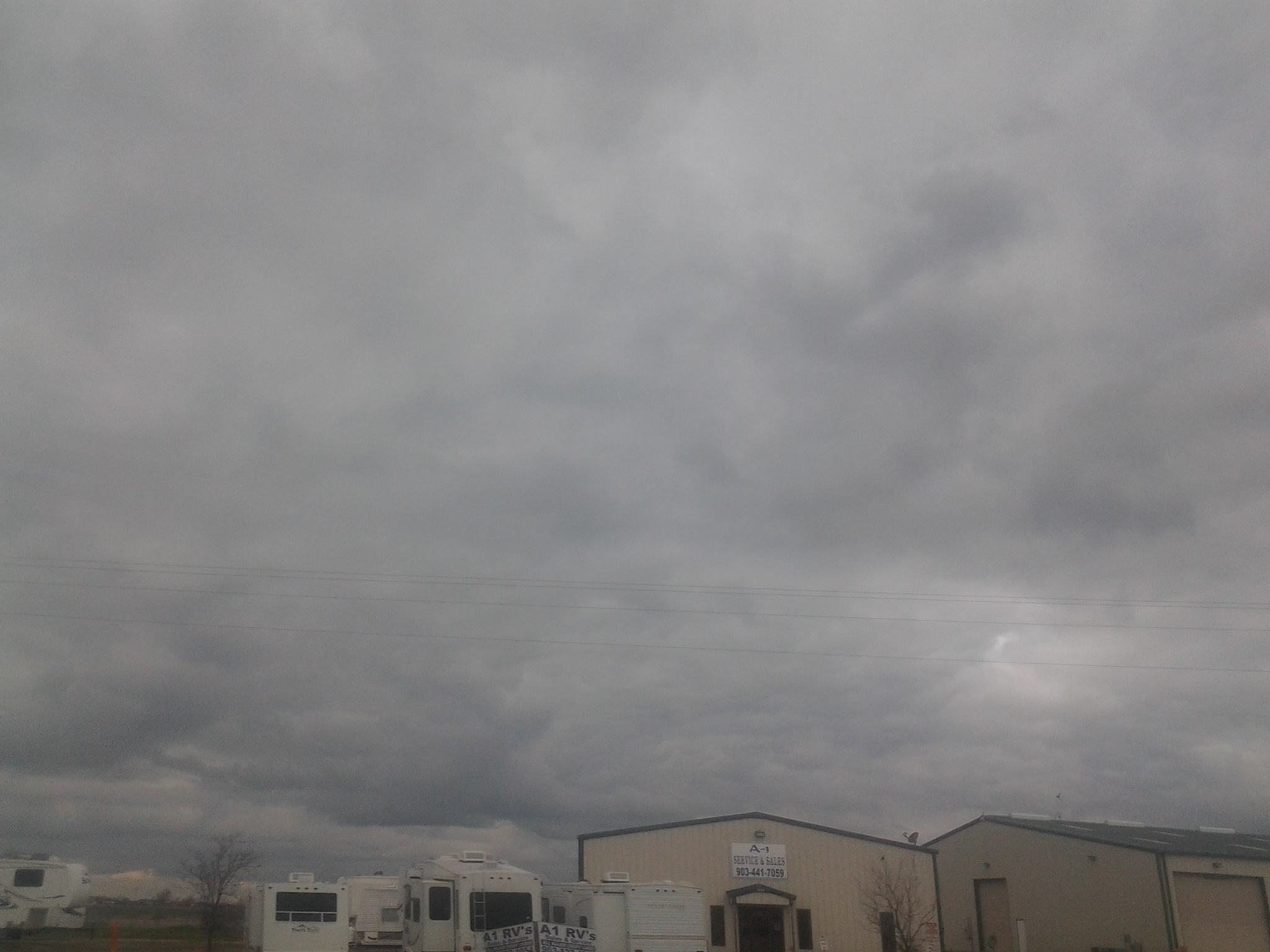 A picture he took on the side of the road on the way there. He liked the dark clouds with the rain coming. Kind of cool.
