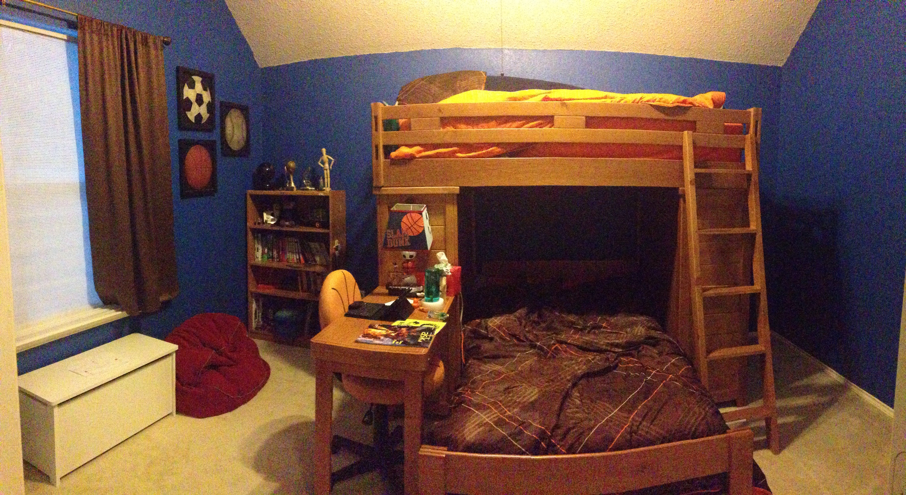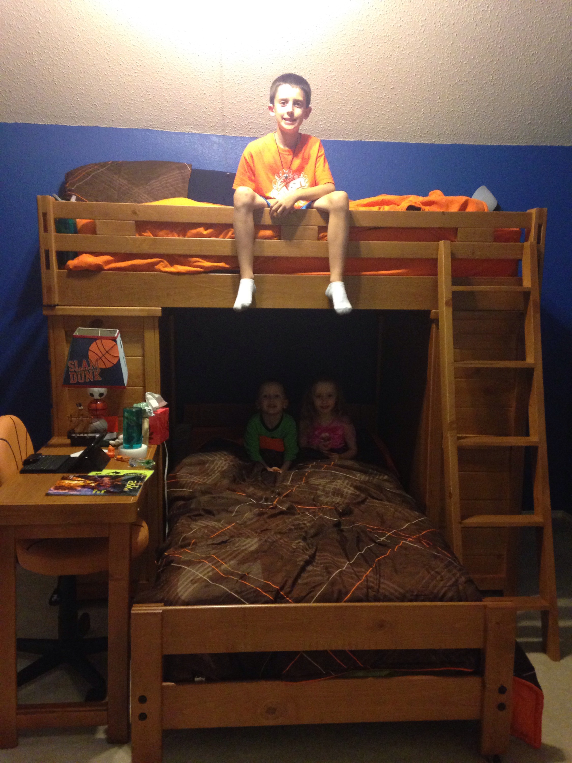 Caleb turned 9 a little over a week ago. His big present from us was a new bunk bed. The kids and I went on a trip with my family last week, but Chris had to stay home due to work and school. The bed was delivered during the week and Chris set it up so it was ready for Caleb when we got home.